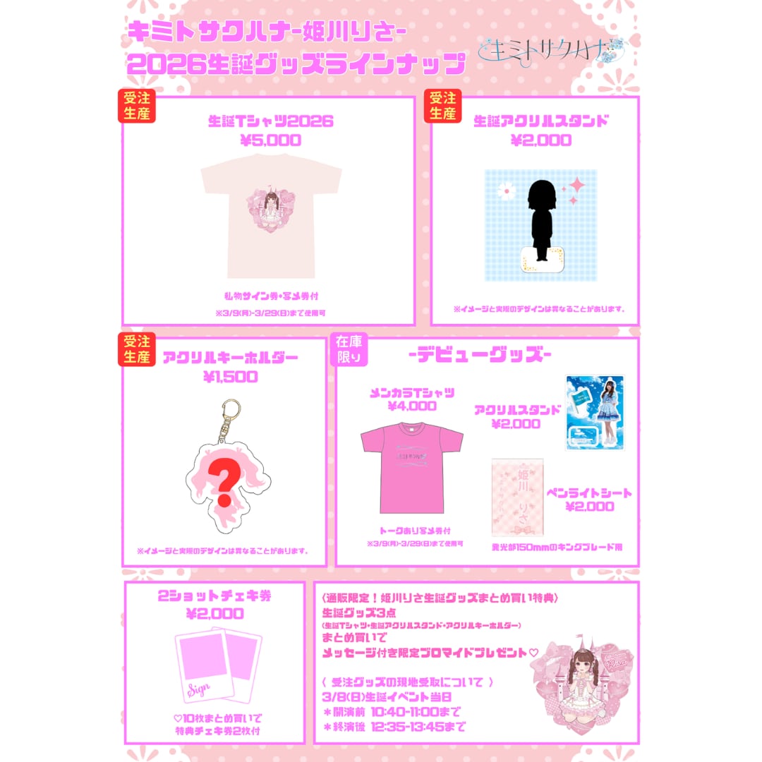【生誕Tシャツ+生誕アクリルスタンド+生誕アクリルキーホルダー】をまとめ買いで、姫川りさ【メッセージ付き限定ブロマイド】プレゼント!※商品重複不可